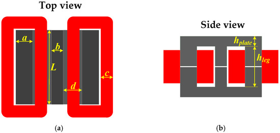 Optimal planar coupled inductor structure. (a) Top view. (b) Side view.