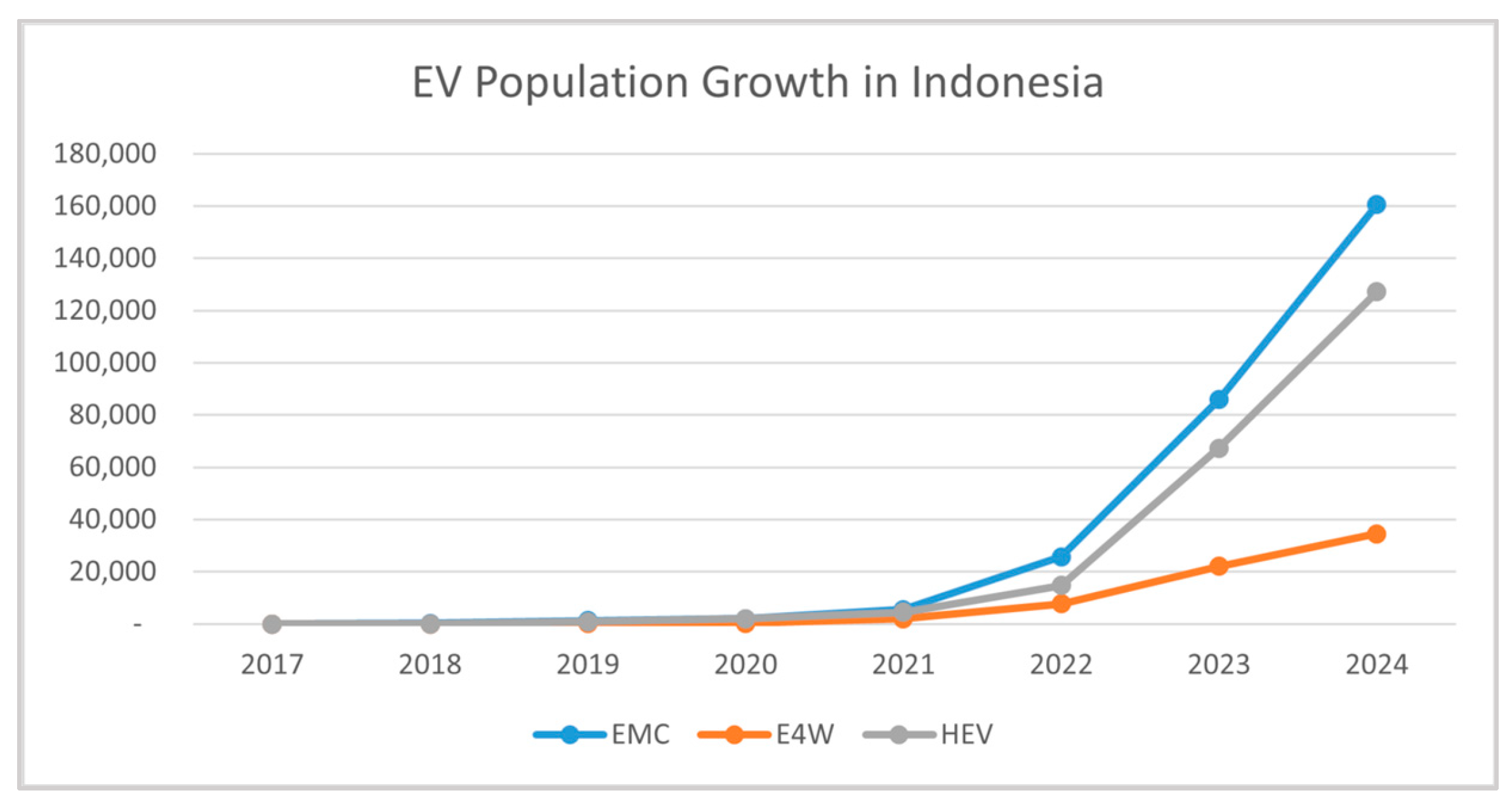 - Tempo. Outlook 2025: Awaiting the Development of Electric Vehicle Infrastructure Jakarta: Tempo. 2025. Available online: https://www.tempo.co/ekonomi/outlook-2025-menanti-perkembangan-infrastruktur-kendaraan-listrik-1196867 (accessed on 14 February 2025).