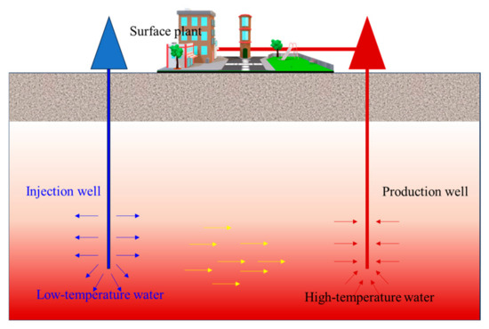 - Li, T.; Han, D.; Yang, F.; Yu, B.; Wang, D.; Sun, D. Study on the thermal-hydraulic coupling model for the enhanced geothermal systems. In Proceedings of the International Conference on Computational Science, Faro, Portugal, 12–14 June 2019; pp. 633–646. [Google Scholar]