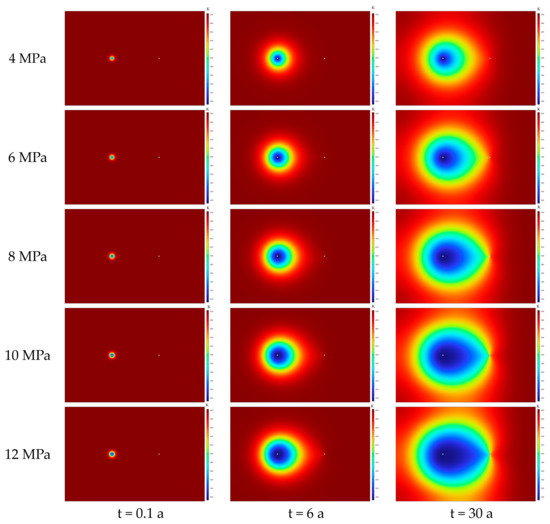 4.1. Evolution of Reservoir Temperature and Pore Pressure