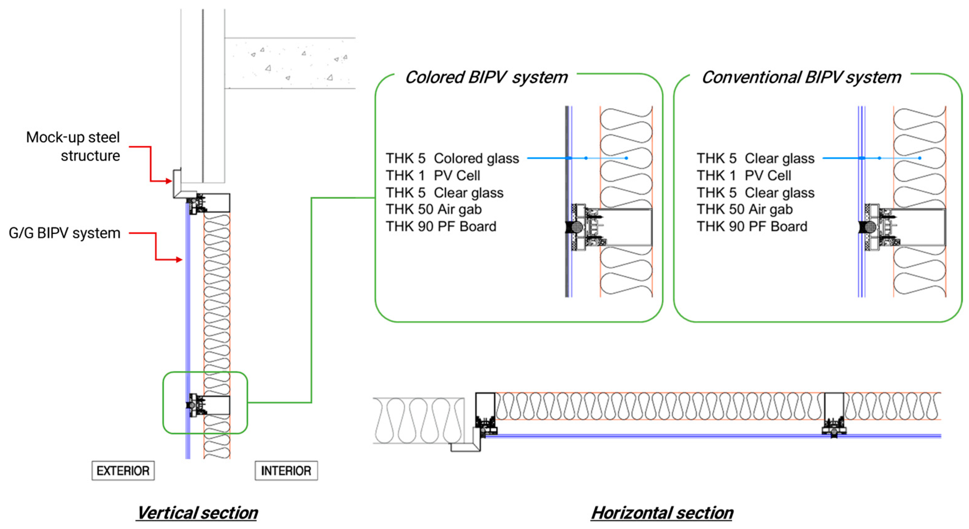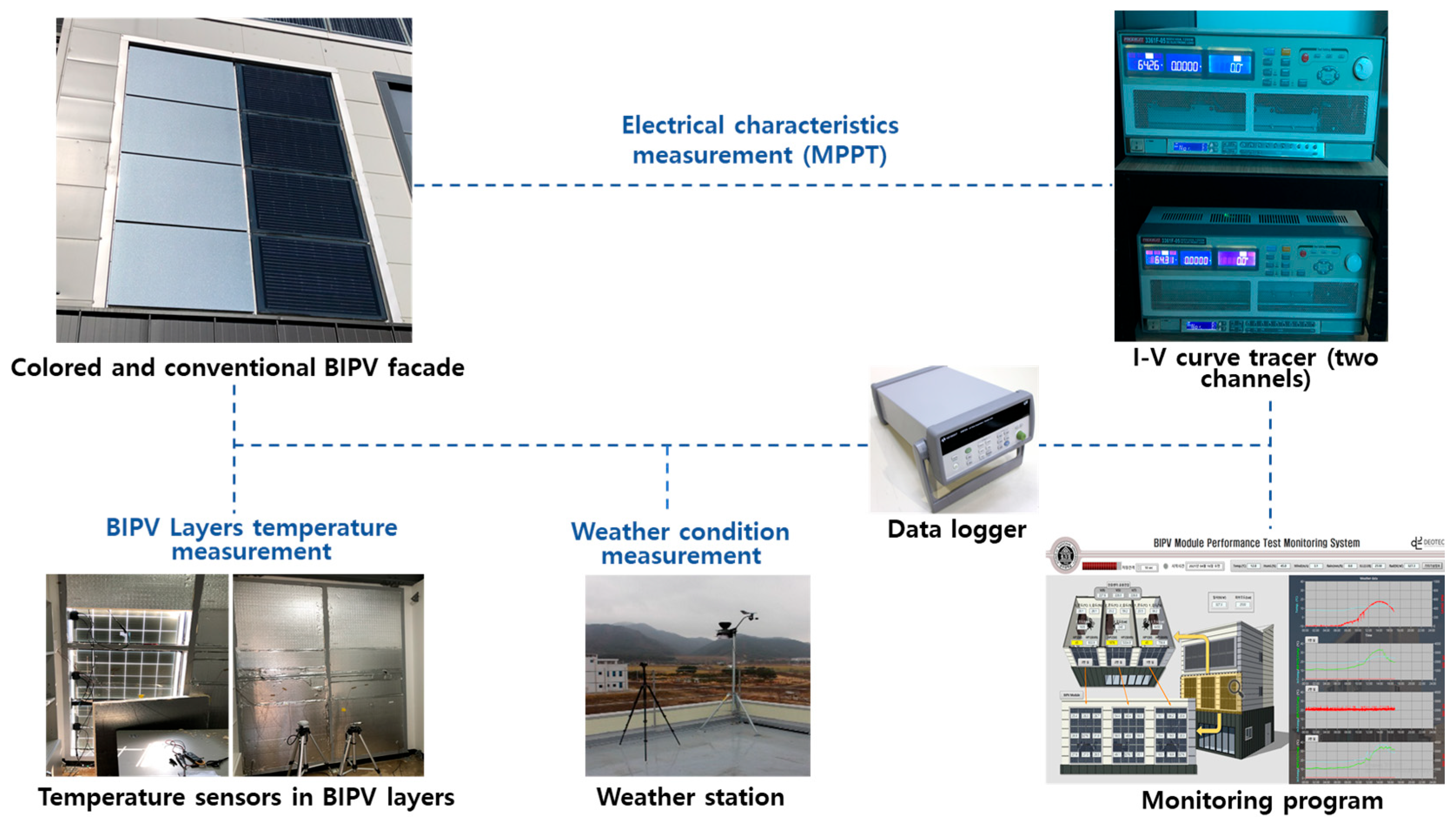 5]. However, unlike conventional BIPV systems, colored BIPV systems exhibit different performance characteristics in terms of temperature, electrical efficiency, and other factors due to the optical properties of the materials used, such as reflectance and transmittance, and thermal transfer differences based on rear insulation conditions. Therefore, a comprehensive performance evaluation considering these factors is necessary.