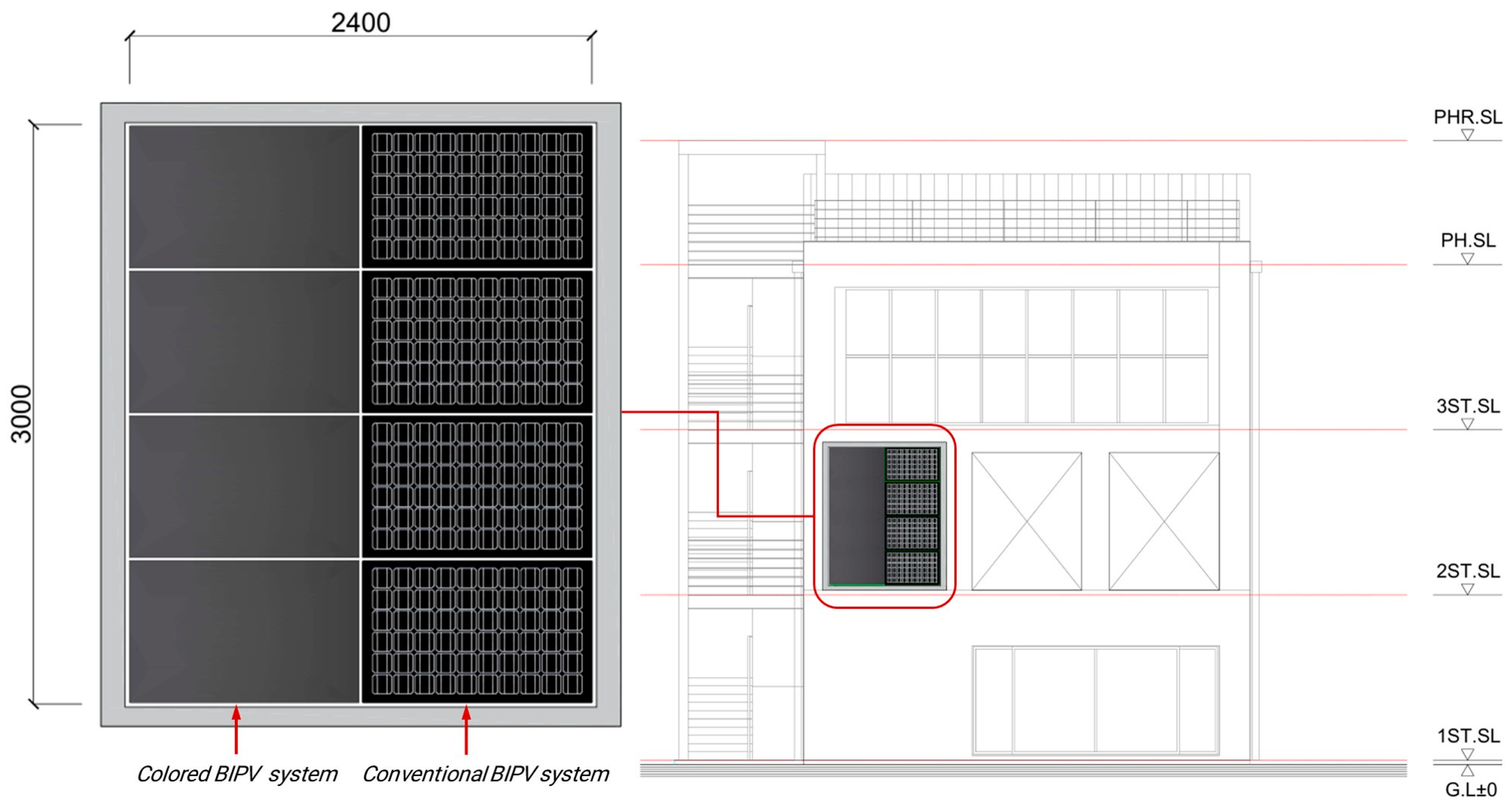3]. BIPV systems eliminate the need for additional land for PV installation and are increasingly recognized as a high-value technology that can replace conventional building finishes. Nevertheless, their acceptance within the construction industry remains limited due to insufficient design information available to architects, low awareness among practitioners, and aesthetic concerns. To address these issues, colored PV modules in diverse colors have been developed, enabling BIPV systems to provide both power generation and architectural integration. These colored BIPV systems are gradually being adopted in the market, offering aesthetic appeal and harmony with building finishes [