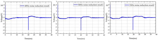 Denoising results of power frequency noise. (a) 49 Hz noise reduction result; (b) 50 Hz noise reduction result; (c) noise reduction result.
