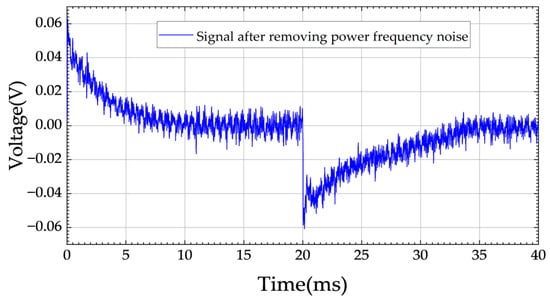 where v+(m) and v−(m) represent first and second half of a PEC periodic signal, respectively, where m denotes the number of signal points collected in one period; s+(m) and s−(m) are the positive and negative pulsed electromagnetic signals, respectively, with the same amplitude but opposite directions; fn+(m) and fn−(m) refer to the power frequency interference and its harmonics. Since power frequency noise does not change abruptly in a short time, it can be considered that rn+(m) and rn−(m) have the same power frequency phase and amplitude. The power frequency interference can be effectively suppressed by performing differential averaging on v+(m) and v−(m), as shown in (3).