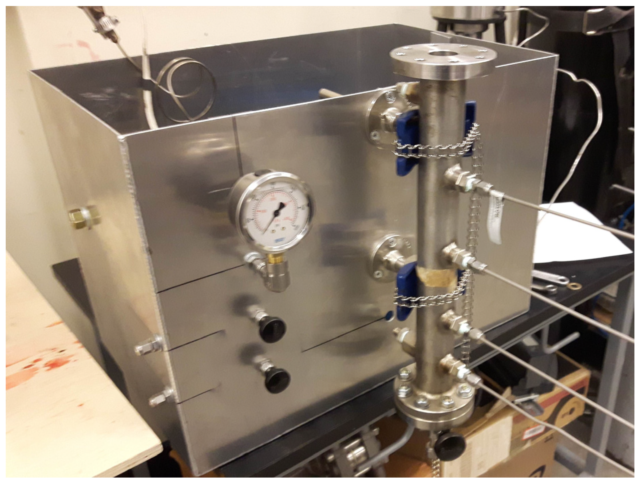 Reduction in heat loss in fluid delivery lines: The spatial layout of the steam generator and solvent delivery system was optimised by positioning them adjacent to the sand pack holder, thereby minimising transfer distances and associated heat losses. The entire assembly was encased in a thermally insulated enclosure, with all interconnecting lines wrapped in high-efficiency insulation materials and equipped with electric heating tape to preserve the desired steam temperature throughout transit.