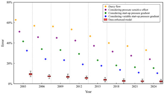 Yu, Q.; Li, C.; Luo, X.; Zhang, Y.; Yu, Y.; Sha, Z.; Zheng, X. Data-Enhanced Variable Start-Up Pressure Gradient Modeling for Production Prediction in Unconventional Reservoirs. Energies 2025, 18, 5744. https://doi.org/10.3390/en18215744