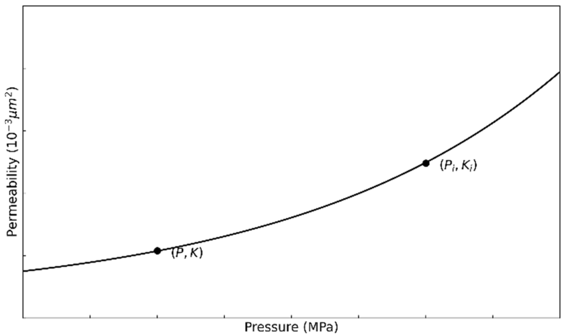 - Fatt, I.; Davis, T.S. Reduction in Permeability with Overburden Pressure. J. Pet. Technol. 1952, 4, 16. [Google Scholar] [CrossRef]