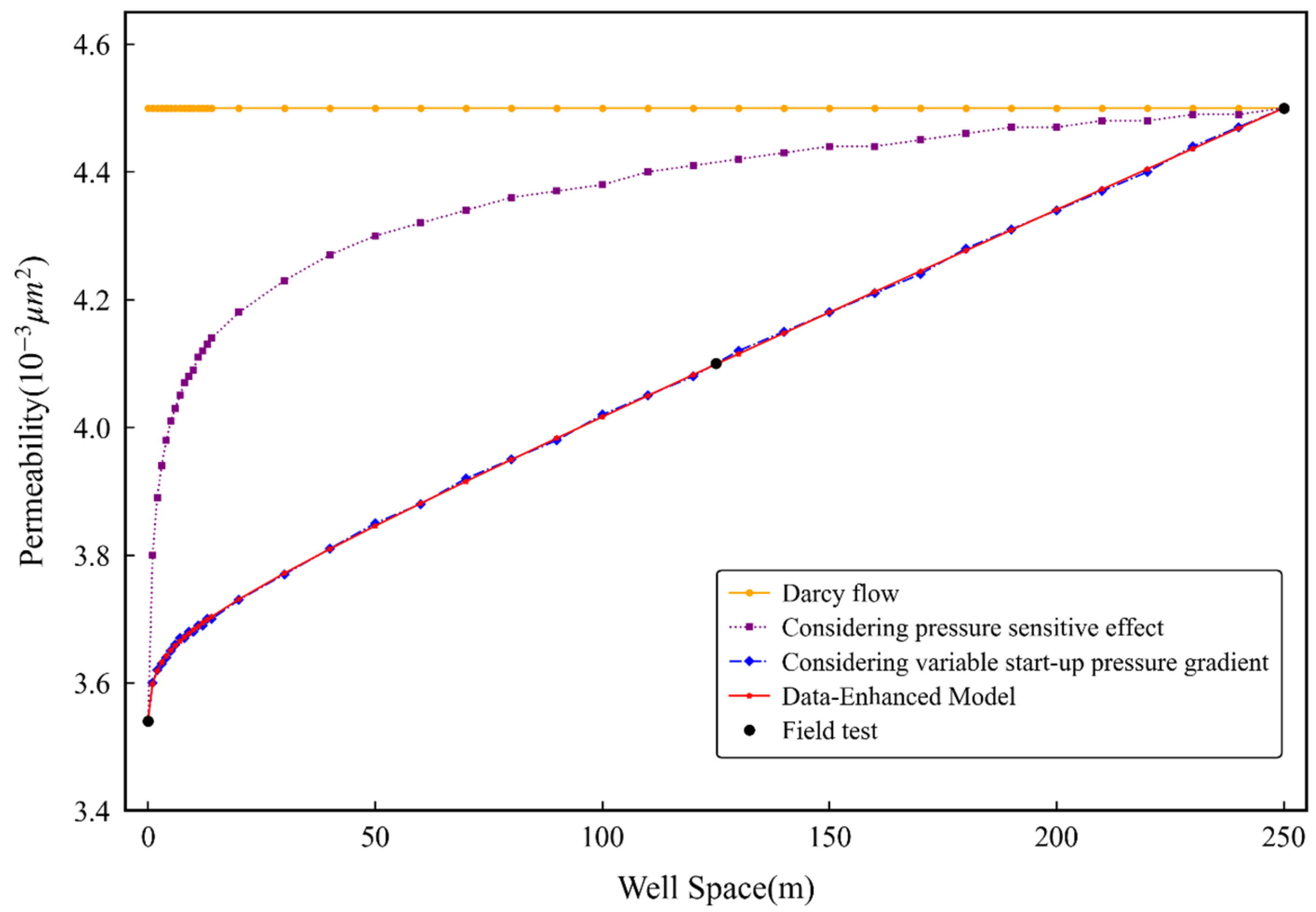 Yu, Q.; Li, C.; Luo, X.; Zhang, Y.; Yu, Y.; Sha, Z.; Zheng, X. Data-Enhanced Variable Start-Up Pressure Gradient Modeling for Production Prediction in Unconventional Reservoirs. Energies 2025, 18, 5744. https://doi.org/10.3390/en18215744