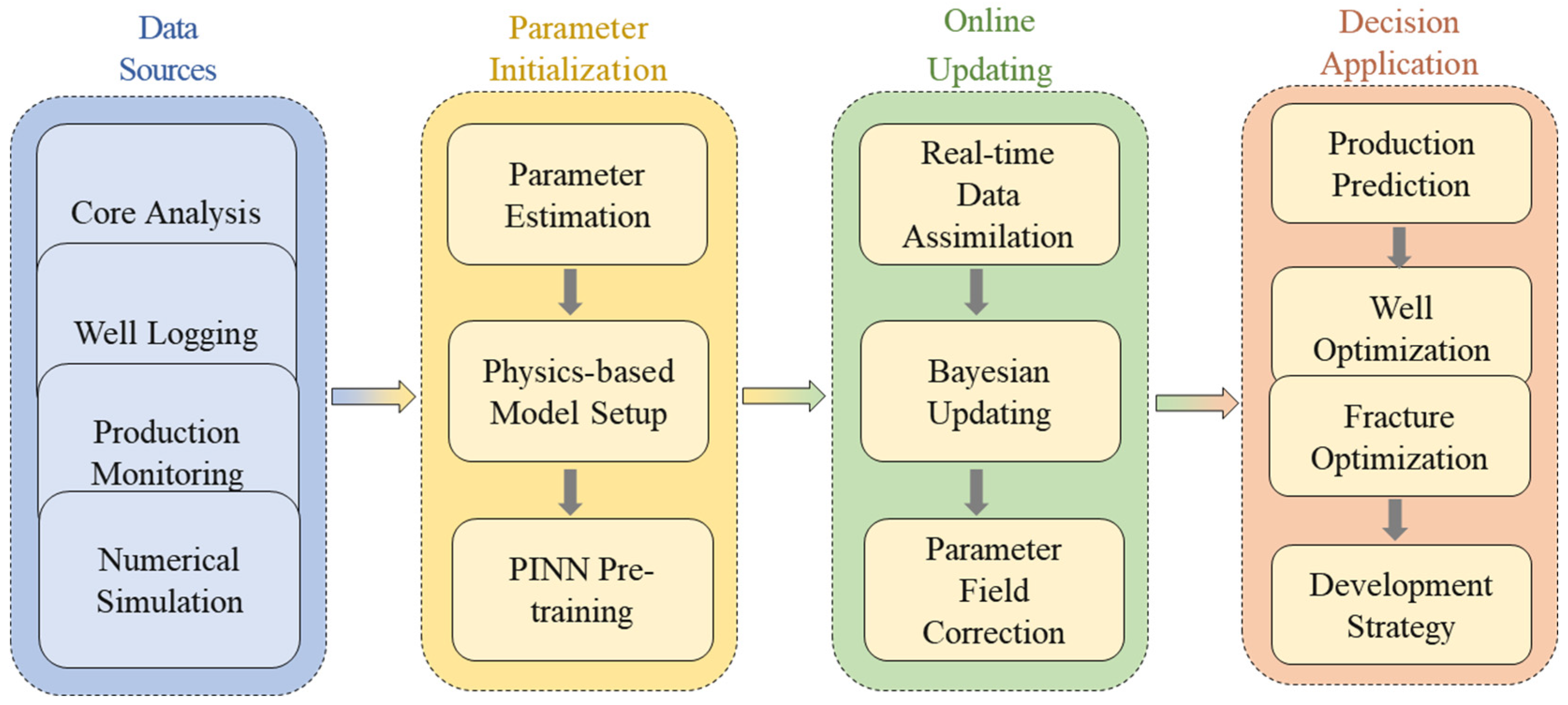 - Systematic evaluation confirmed the data-enhanced model’s strong consistency with field production data, reliable parameter corrections, and robust performance under sensitivity and uncertainty. A standardized workflow for field deployment was developed, demonstrating its potential for real-time adaptation and decision support in unconventional reservoir management.