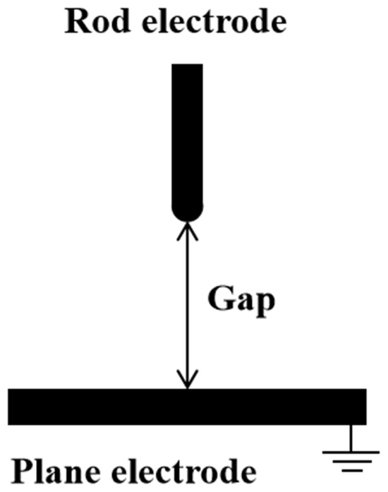 The rod-plate gap structure is established, as shown in Figure 1. In this paper, the 1.2/50 μs standard lightning impulse voltage waveform specified in the IEC 60060-1:2010 standard [20] is applied as the external voltage to the rod electrode. The lightning impulse voltage waveform is represented by a double-exponential function. The relationship of the 1.2/50 μs standard lightning impulse voltage is as follows: