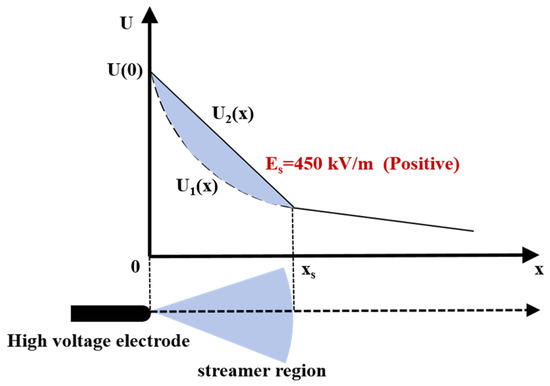 To calculate the charge in the streamer region, Reference [27], the potential distribution curve is simplified using the following assumptions: