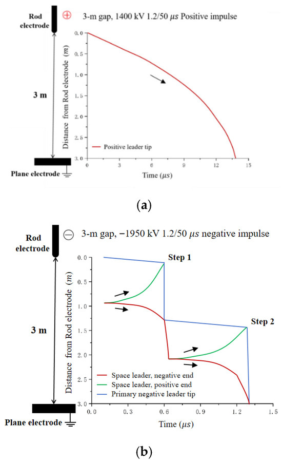 Simulation of Positive and Negative Leader Development. (a) Simulation of positive leader development; (b) Simulation of negative leader development.
