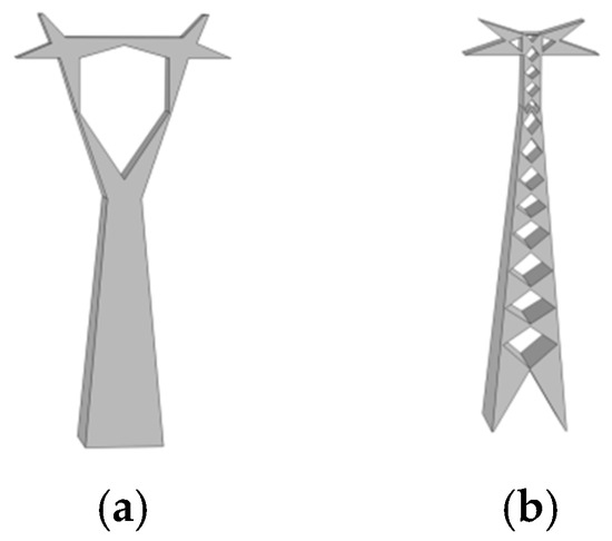 Three-dimensional models of the towers. (a) Cup-Tower; (b) Tangent Tower.