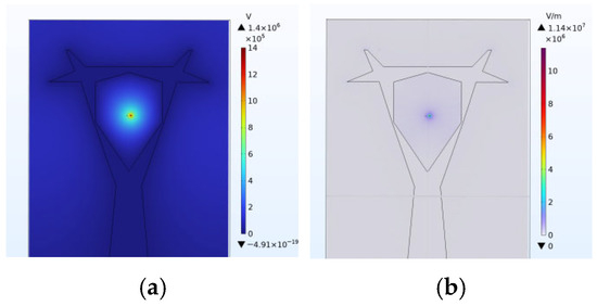 220 kV Cup-Tower Middle Phase Potential and Electric Field Distribution. (a) Potential; (b) Electric Field.