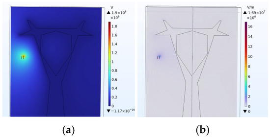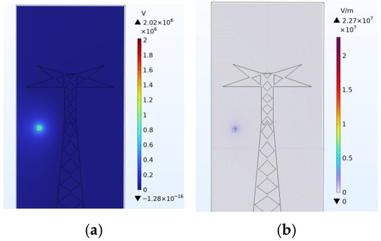 500 kV Tangent Tower Side Phase Potential and Electric Field Distribution. (a) Potential; (b) Electric Field.