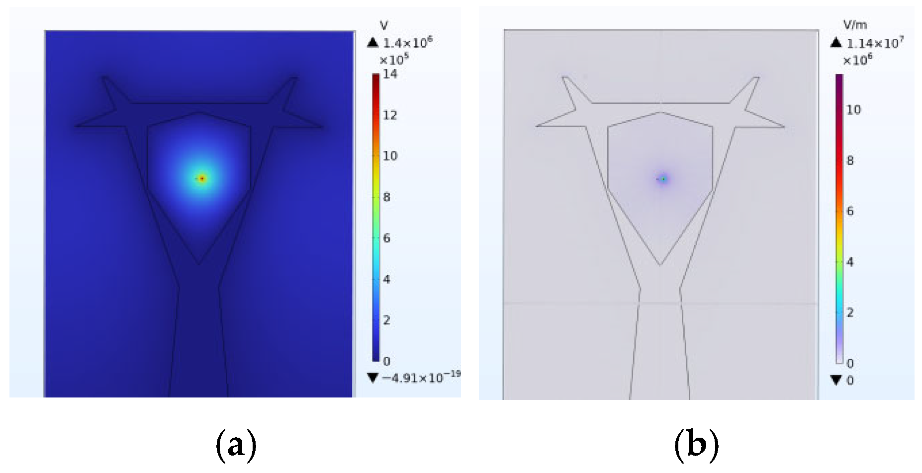 - Goelian, N.; Lalande, P.; Bondiou-Clergerie, A.; Bacchiega, G.L.; Gazzani, A.; Gallimberti, I. A simplified model for the simulation of positive-spark development in long air gaps. J. Phys. D Appl. Phys. 1997, 30, 2441–2452. [Google Scholar] [CrossRef]