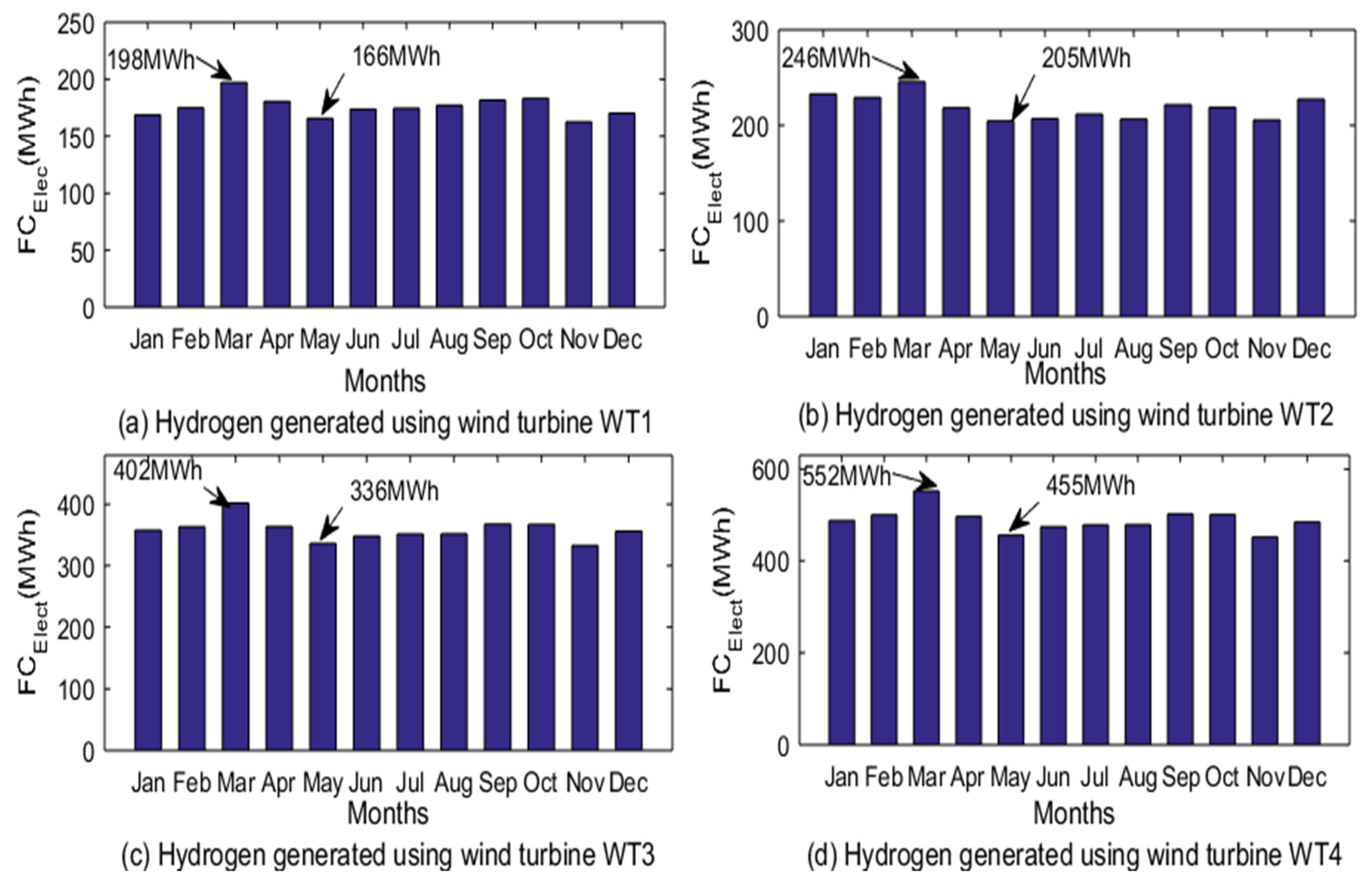 Table 3. Monthly wind turbine capacity factors and electricity generation estimation of wind turbines using wind regime of Vesleskarvet for hydrogen production.