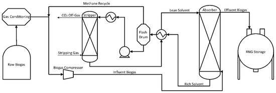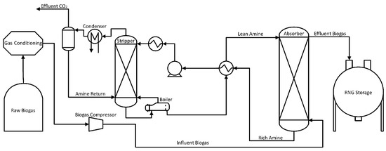 | Chemical Absorption with Amines | CO2 Removal | High CH4 purity |