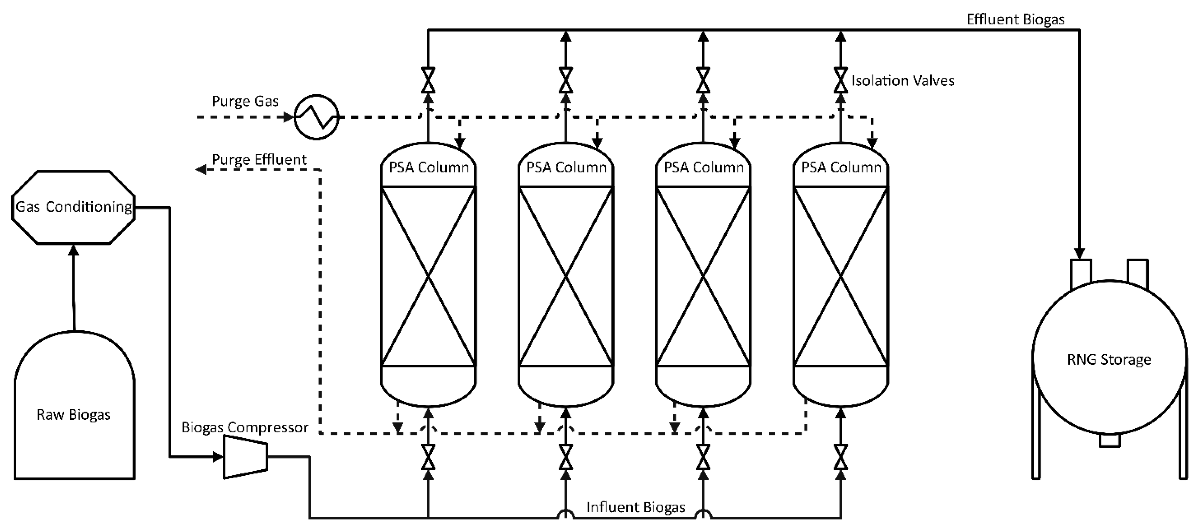 - Ali Abd, A.; Roslee Othman, M. Biogas upgrading to fuel grade methane using pressure swing adsorption: Parametric sensitivity analysis on an industrial scale. Fuel 2022, 308, 121986. [Google Scholar] [CrossRef]