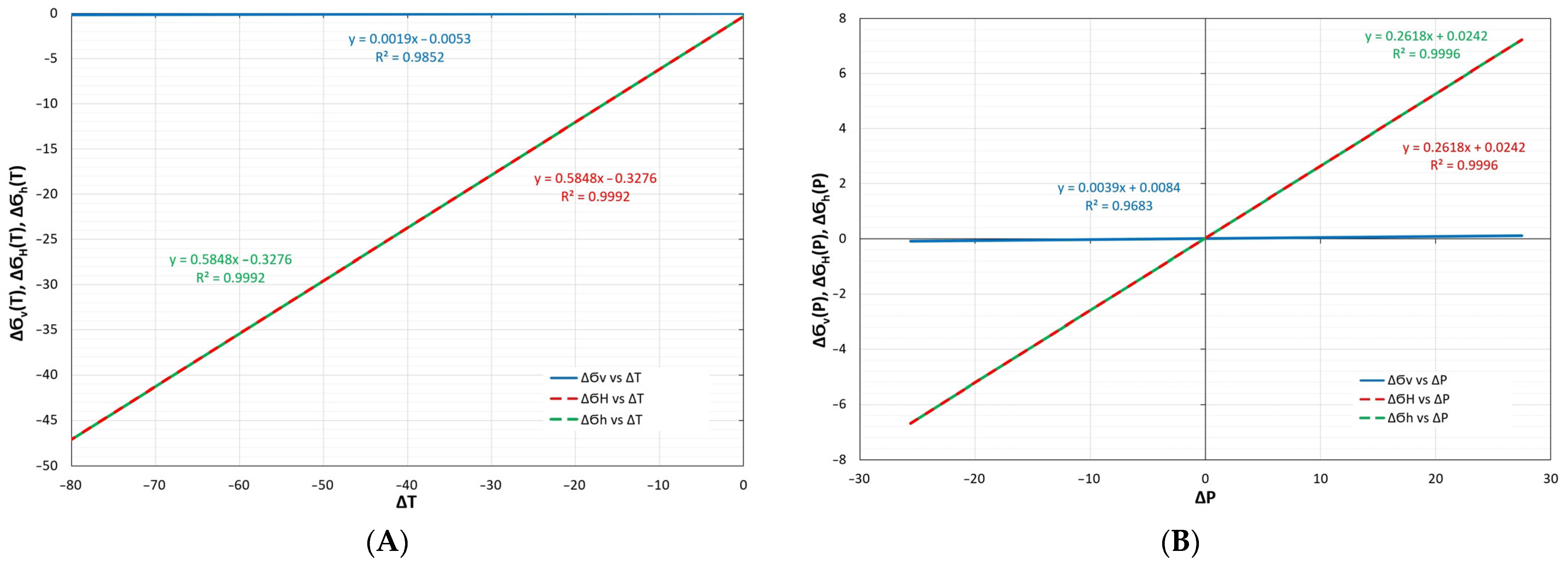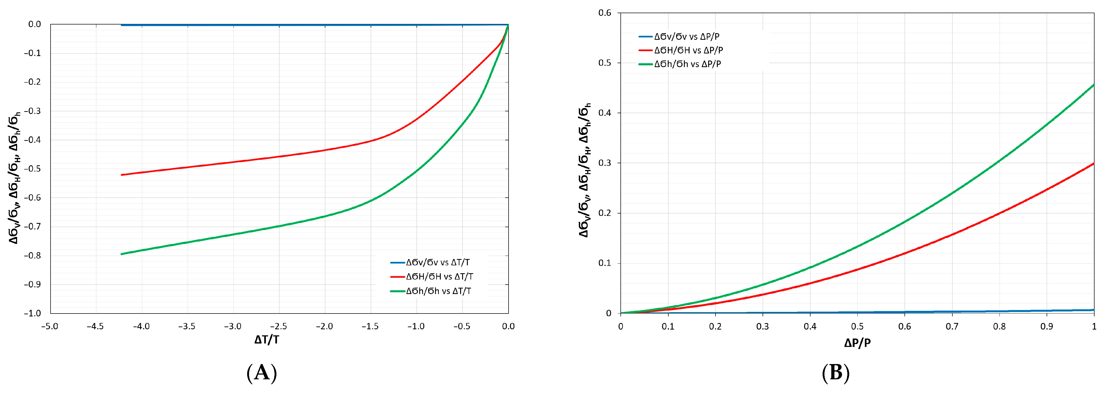 The change in total stress () can be rewritten by incorporating elastic properties (G, K, v) and changes in diagonal components of strain (), volumetric strain (), and also changes in poroelastic () and thermoelastic component () of stress along the diagonal directions [53]: