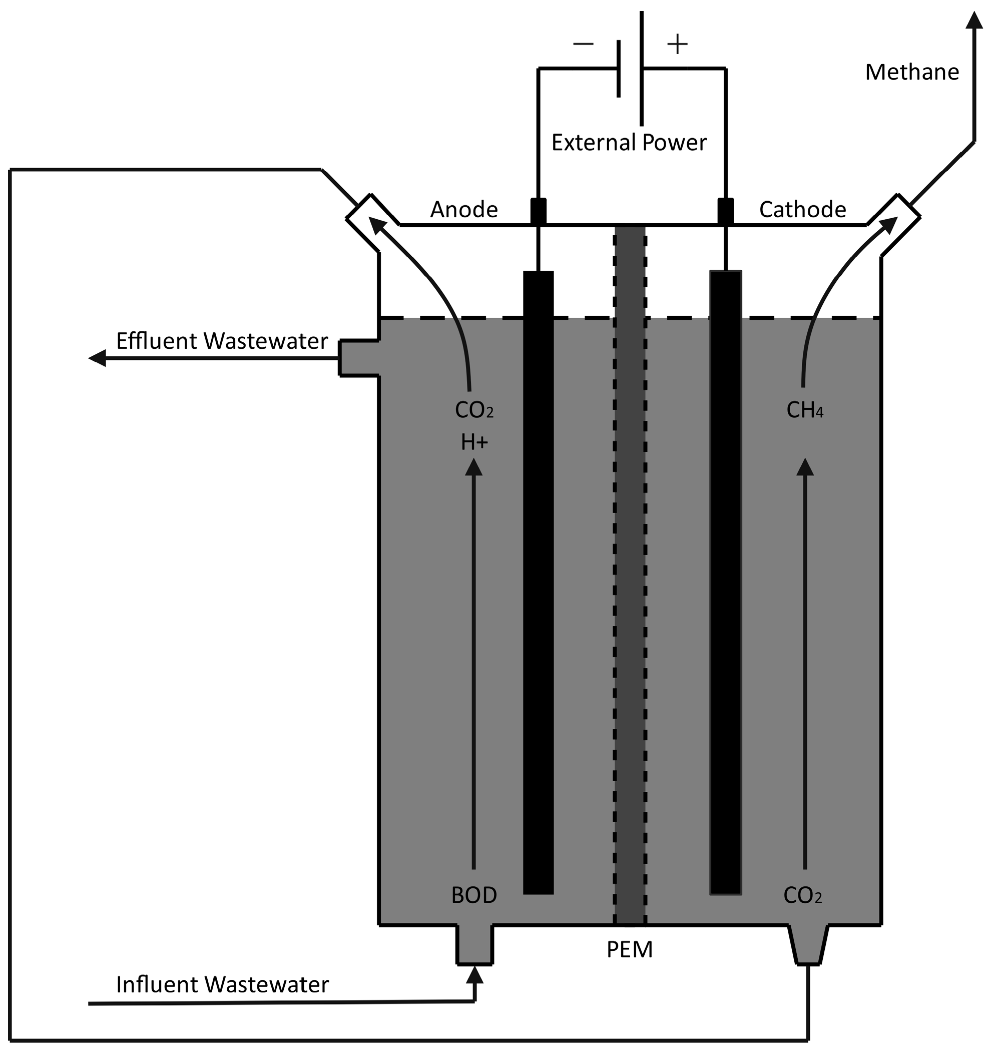 Figure 7. Microbial Electrolysis Cell for Direct CH4 Production.
