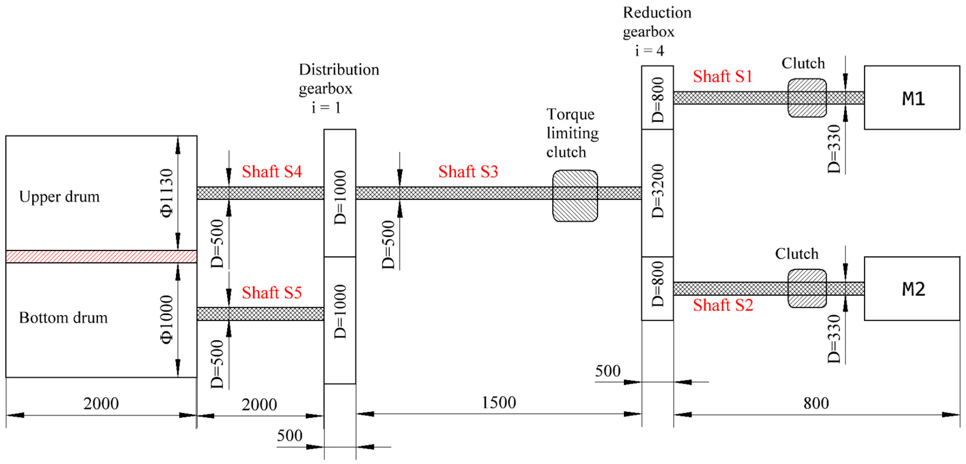 Figure 1 shows the technological flowchart and layout of the electromechanical equipment of the drum shears under the conditions of JSC Qarmet.