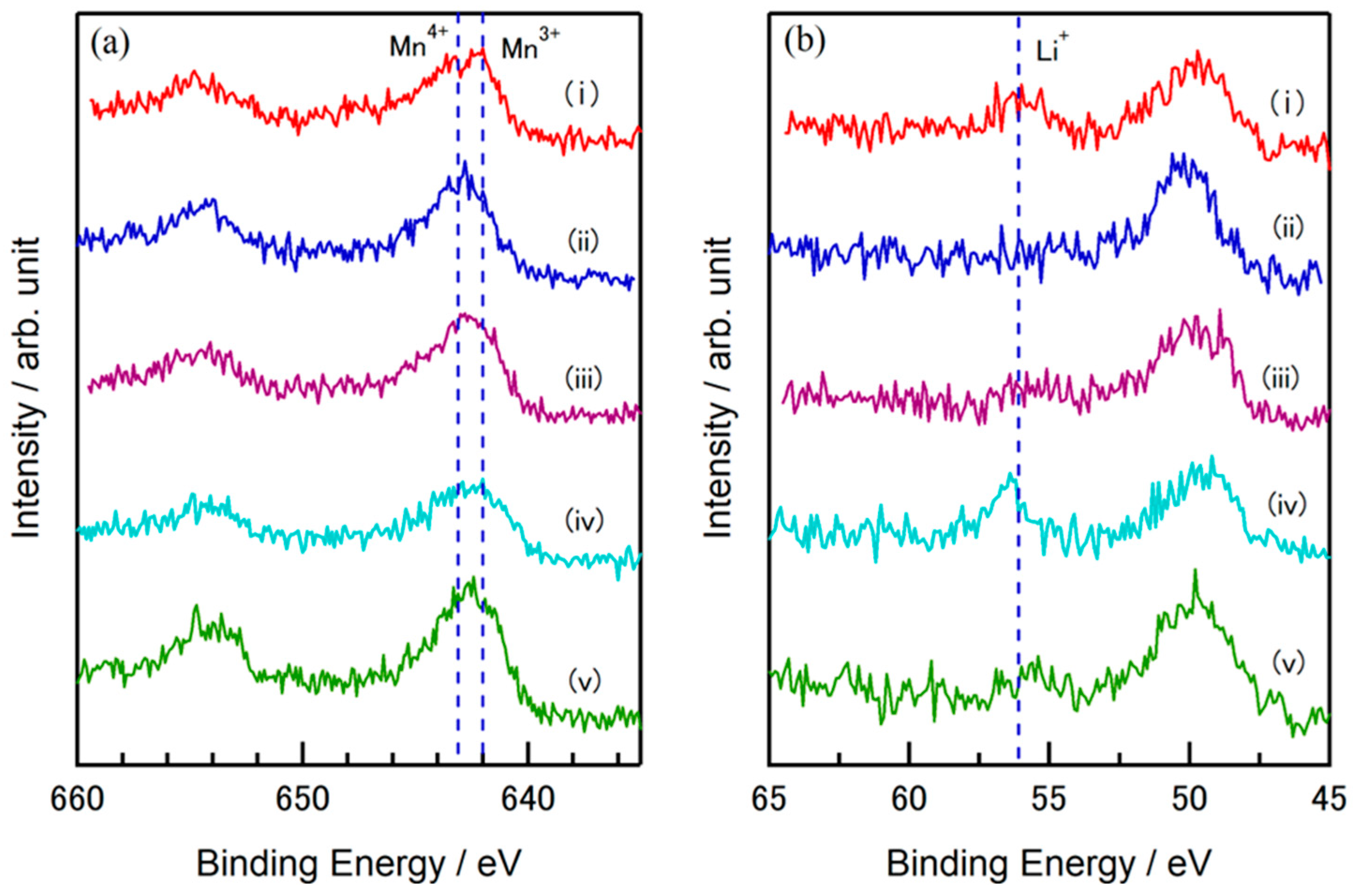 - Ramana, C.V.; Massot, M.; Julien, C.M. XPS and Raman spectroscopic characterization of LiMn2O4 spinels. Surf. Interface Anal. 2005, 37, 412–416. [Google Scholar] [CrossRef]