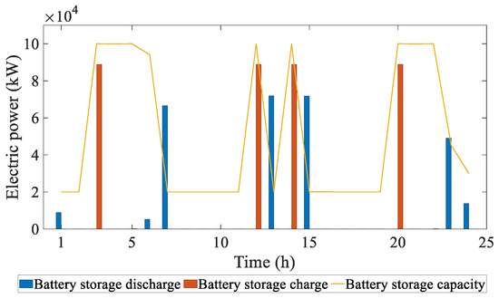 where denotes the electricity payment from the IES to the independent storage at time (positive when the IES pays the storage). is the internal electricity price (CNY/kWh) decided at the upper level. A positive value of occurs when discharging exceeds charging; a negative value indicates net purchasing from the IES due to charging. If the model settles on energy rather than power, multiply by the time step (h): (CNY). Summing over yields the total electricity cash flow, which equals the storage’s electricity revenue term in the lower-level objective by construction: storage revenue recorded at the lower level. The electricity settlement equations for thermal and hydrogen energy storage are analogous to those for electrical energy storage and are therefore omitted for brevity.