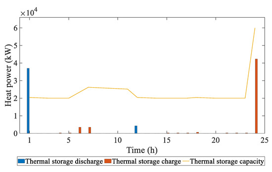 In comparison, as is shown in Figure 8 and Figure 9, thermal energy storage yields lower direct returns than electrical storage but exhibits significant system-level synergistic value. It flattens thermal loads and stabilises CHP operation by shifting heat supply from off-peak to peak periods, thus alleviating the output pressure on GBs. In Scenario 4, carbon constraints further magnify the positive effects of electric-thermal coupling. In Scenario 5, in conjunction with electrical storage, power-to-heat conversion becomes more seamless; however, the expansion in scale leads to a marginal decline in unit efficiency.