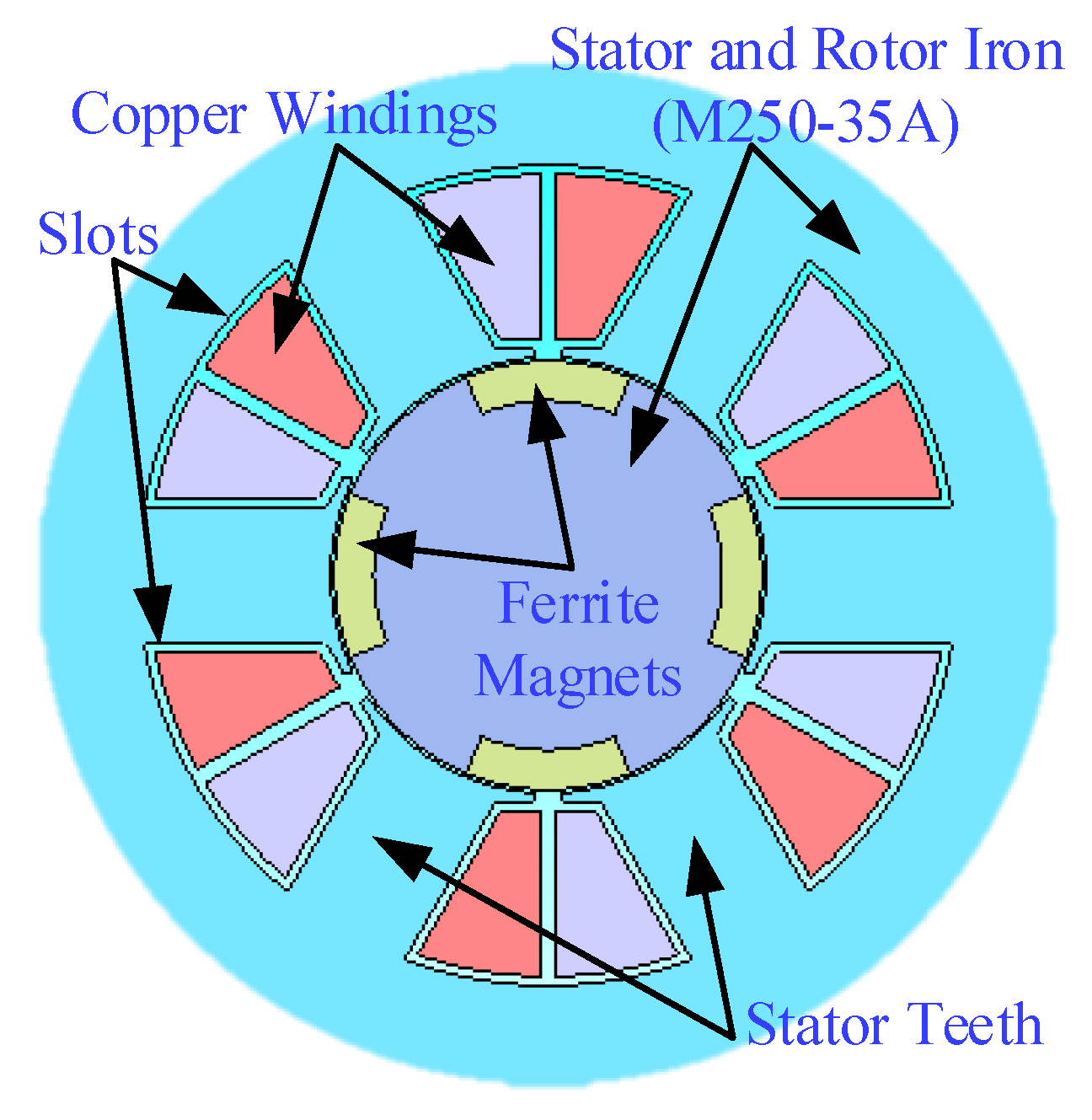 Figure 3. A 2D schematic of the PMSM FEA model.