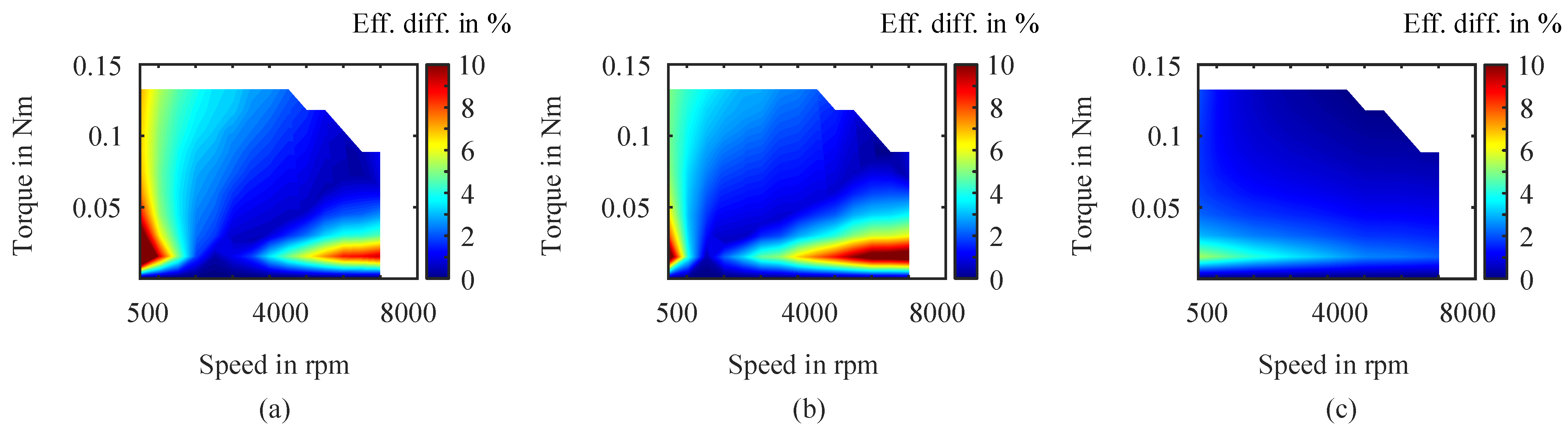 Table 2. Degrees of influence of the difference error sources on the drive cycle efficiency prediction using efficiency maps as LUTs across PMSM models as derived from this study (aggregated view). For a general overview on the different types of losses and their impacts on motor performance, see [9,44,50,51,52,53,54].