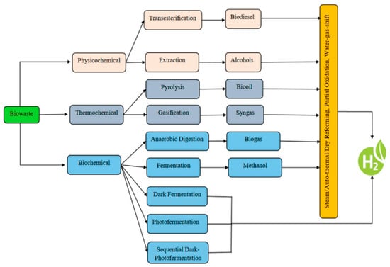 - Abawalo, M.; Pikoń, K.; Landrat, M.; Ścierski, W. Hydrogen Production from Biowaste: A Systematic Review of Conversion Technologies, Environmental Impacts, and Future Perspectives. Energies 2025, 18, 4520. [Google Scholar] [CrossRef]