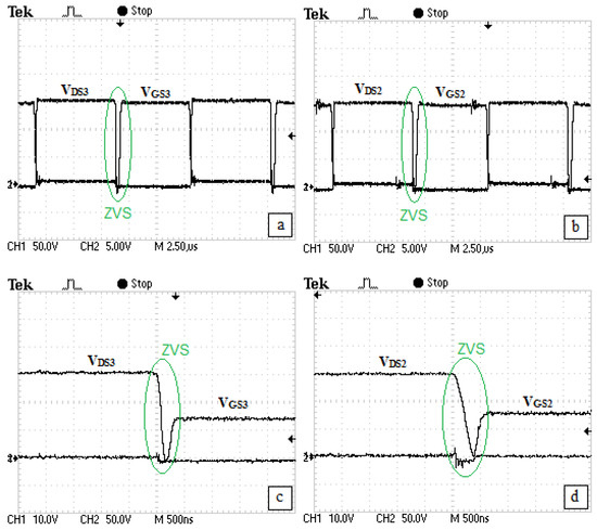 ZVS in (a) , (b) (at full load), and ZVS in (c) (d) (at 5% load).