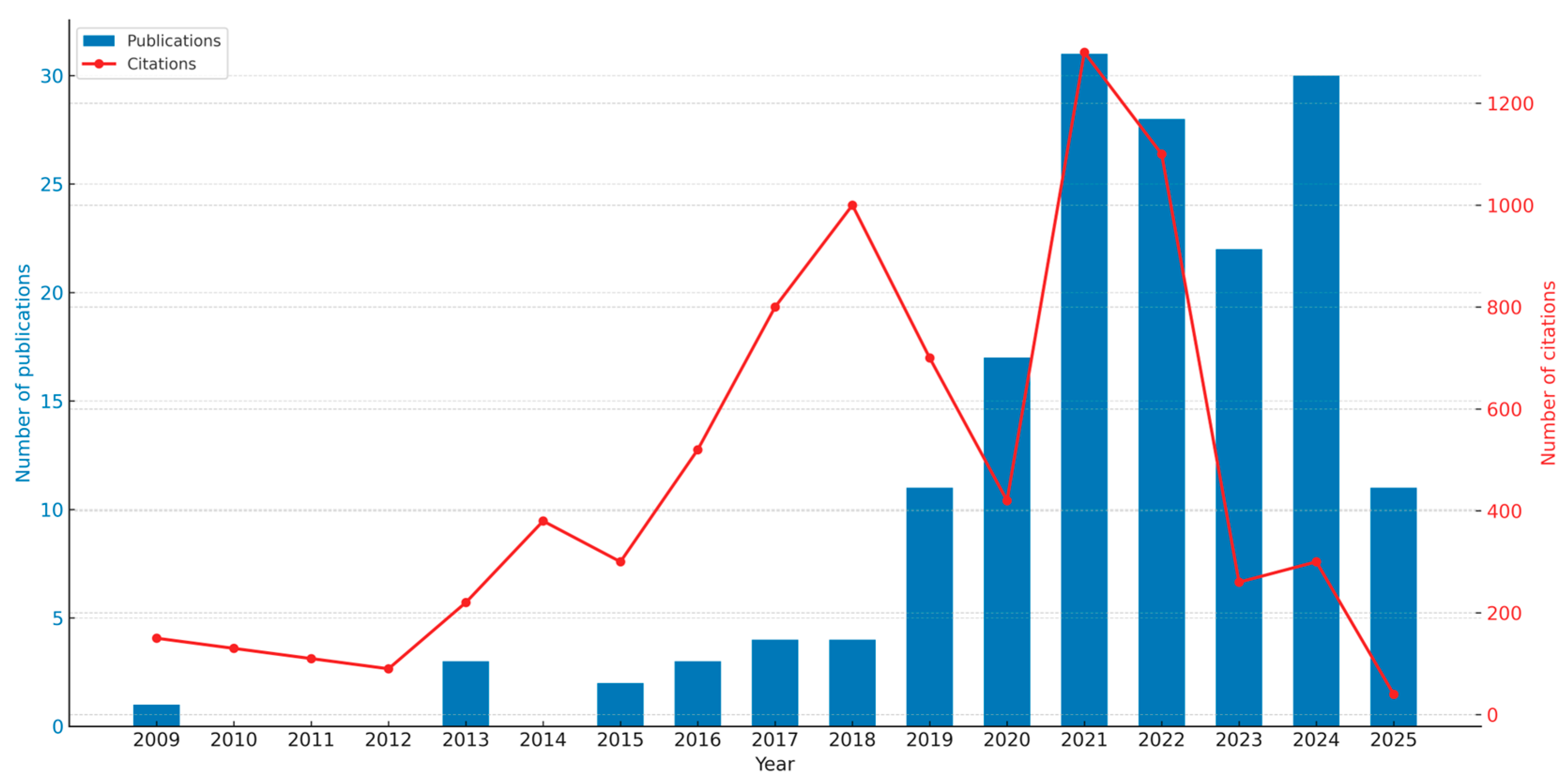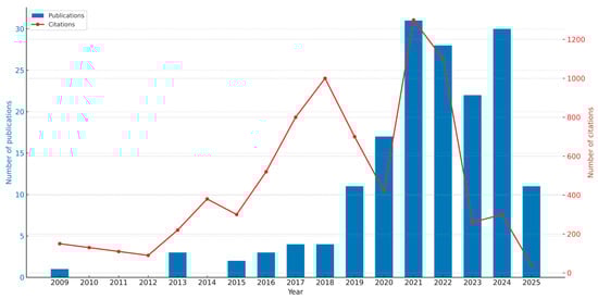 Publication and citation trends in distributed energy system (2009–2025).
