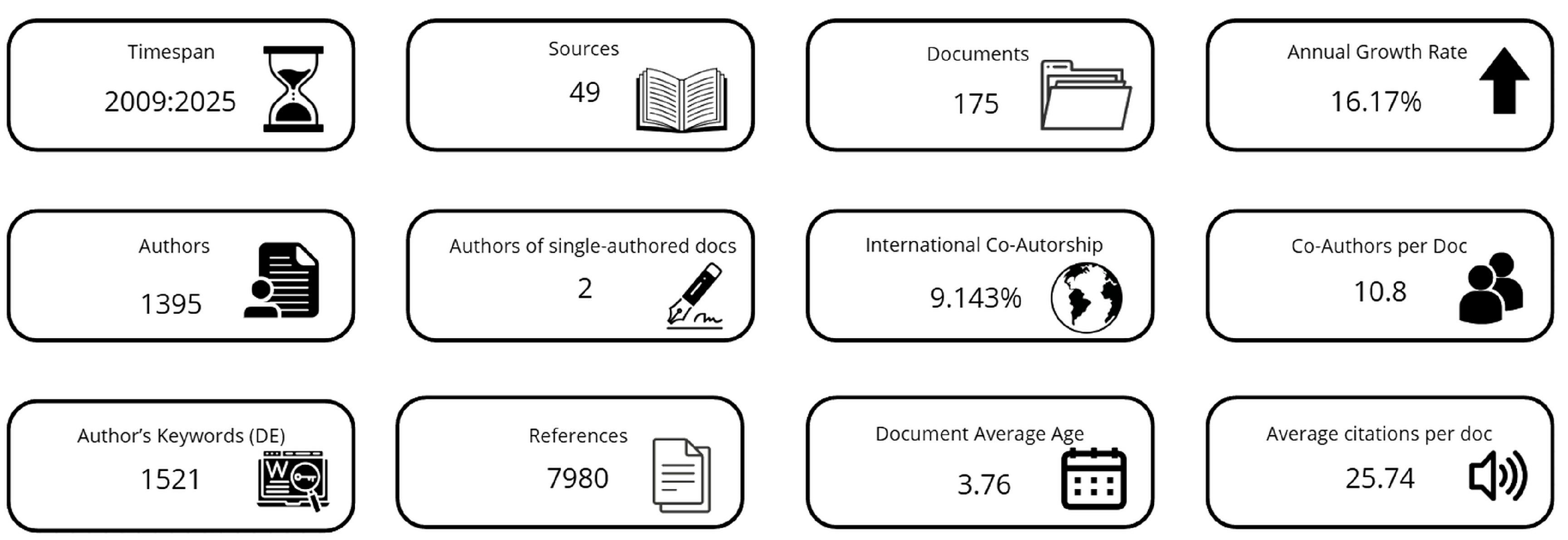 Key indicators of the database subjected to bibliometric analysis.