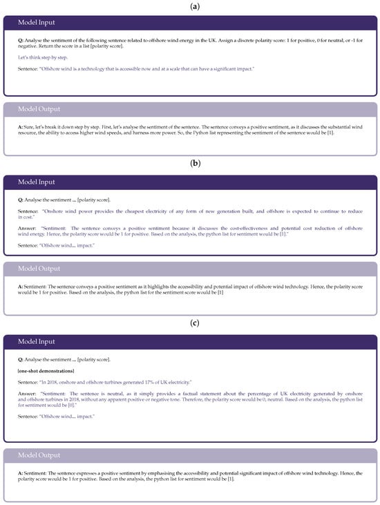 Following the strong performance and cost effectiveness within the GPT series, the ChatGPT model (GPT-3.5-Turbo) was used as one of the chosen LLMs. In addition, OpenAI’s latest-trained GPT-4 model (GPT-4-Turbo) was utilised—this is the most expensive LLM in Table 2, trained though on a significantly greater number of training tokens. The Llama, Mixtral, and Falcon models were also tested because they have fewer model parameters than the GPT series. This was intended to enable greater understanding of the behaviour of different-sized LLMs under different prompt techniques. These models are all fine-tuned to dialogue use cases, which makes them suitable and ready-to-use for our sentiment analysis question-answering tasks.