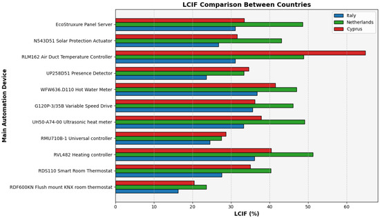 Figure 3. This index shows how much of the overall installation expenses are attributable to labor alone, as opposed to the cost of supplies or equipment. Interestingly, for eight of the devices, The Netherlands had the highest LCIF, indicating a substantial financial barrier to SRT adoption in high-wage economies. Despite being the standard case, Cyprus exhibits the greatest LCIF for just three devices, whereas Italy continuously has the lowest overall labor cost burden. These variations show how labor market factors might impact national preparedness for smart technology scaling and distort financial attractiveness. To encourage increased market penetration, policymakers in nations with high LCIF levels may take into account labor-specific incentives or subsidy programs.
