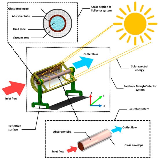 - Khan, M.S.; Yan, M.; Muhammad, H.; Khuram, A.; Amber, P.; Anser, M. Comparative Performance Assessment of Different Absorber Tube Geometries for Parabolic Trough Solar Collector Using Nanofluid. J. Therm. Anal. Calorim. 2020, 142, 2227–2241. [Google Scholar] [CrossRef]