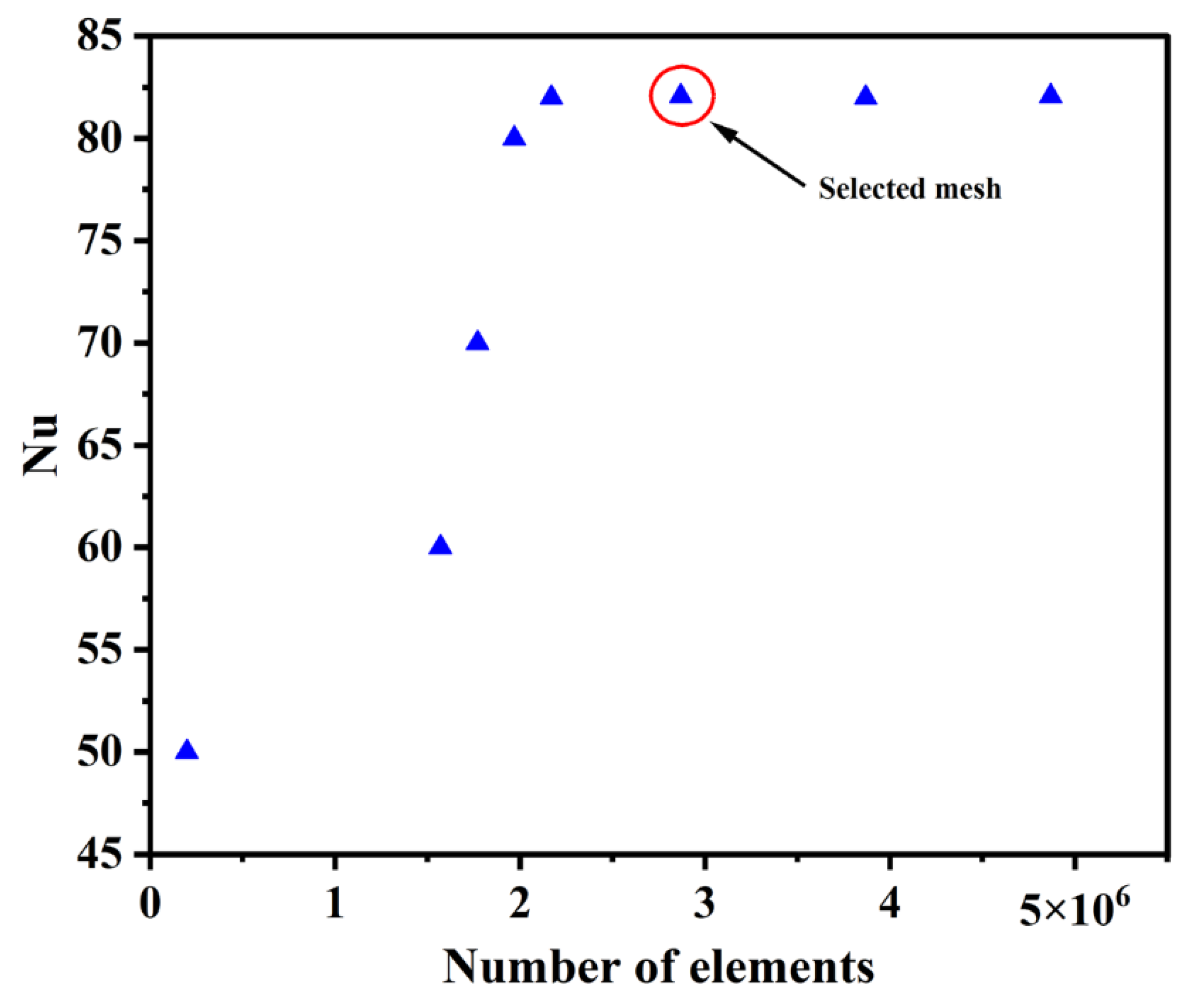 Figure 4). To verify grid independence, several mesh densities were tested, ranging from 5 × 10