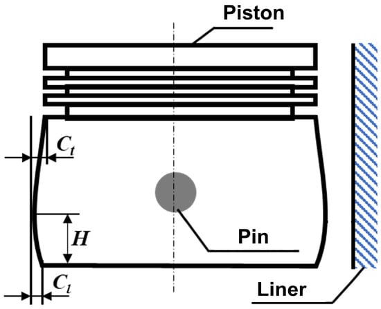 To achieve multi-objective optimization of key piston skirt parameters (as shown in Figure 14) crown point height (H), upper skirt offset (Ct), and lower skirt offset (Cl) in Scheme 2, RSM was employed. As supported by LV et al. [], precise adjustment of these parameters can suppress piston secondary motion and improve friction performance.
