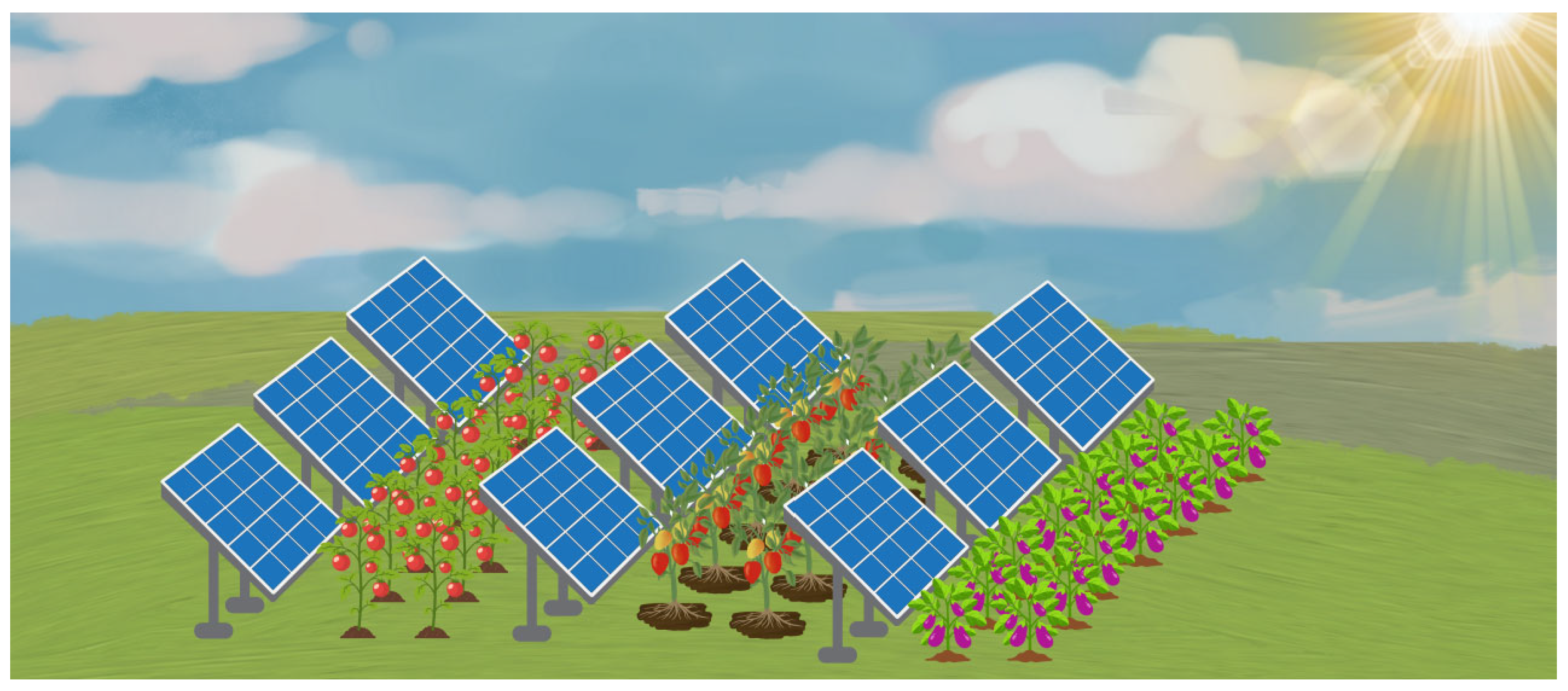 17] studied low- and high-density AV systems for tomato farming, comparing standalone crop production to an AV system in Botswana. Although tomatoes are shade-tolerant, the authors predicted a minimum reduction in yield by 16% resulting from partial shade [
