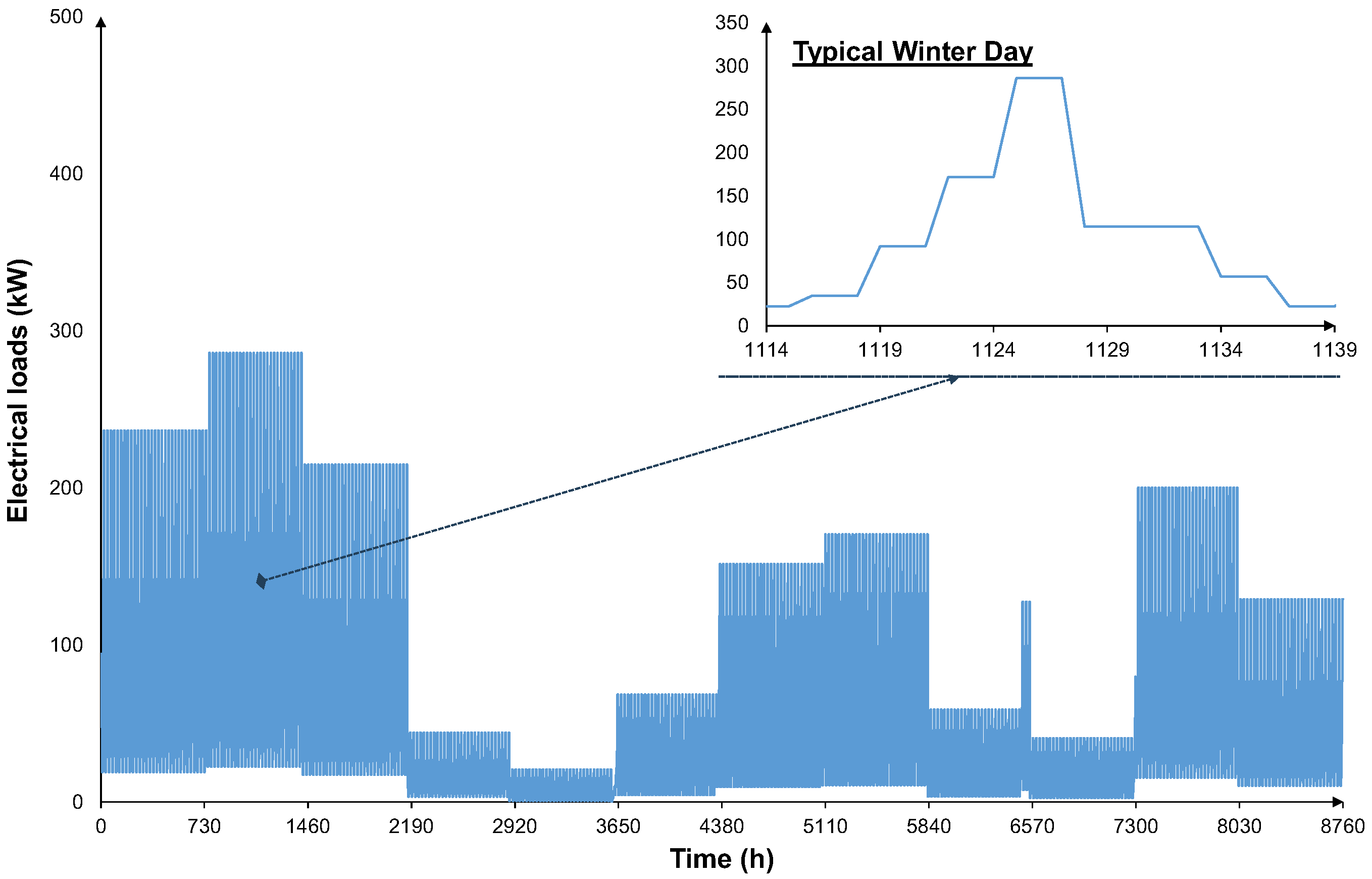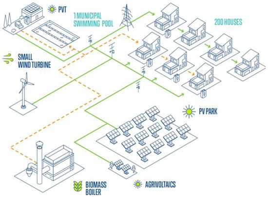 - Scheme 2 (Cold-climate domestic sector): 50 residential houses featuring photovoltaics and small wind turbines to serve rural communities with significant thermal demands due to higher altitude.