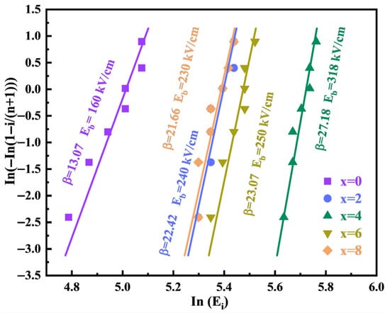 - Lan, J.; Li, H.; Zhang, G.; Lin, F.; Liu, G. Mixed Three-Parameter Weibull Breakdown Distribution Model and Breakdown Mechanism of Metalized Films. In Proceedings of the 2023 4th International Symposium on Insulation and Discharge Computation for Power Equipment (IDCOMPU2023), Wuhan, China, 26–28 May 2023; Springer: Singapore, 2024; Volume 1101, pp. 1–12. [Google Scholar]