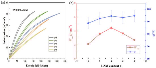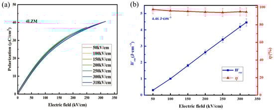 - Yang, L.T.; Kong, X.; Cheng, Z.X.; Zhang, H.Y.; Wang, F.; Li, B.; Li, J.F.; Li, Y.L.; Chen, L.Q.; Zhang, S.J. Ultra-high energy storage performance with mitigated polarization saturation in lead-free relaxors. J. Mater. Chem. A 2019, 7, 8573–8580. [Google Scholar] [CrossRef]