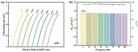 - Ning, Y.; Pu, Y.; Zhang, X.; Chen, Z.; Wu, C.; Zhang, L.; Wang, B.; Li, X. Remarkable energy-storage density together with efficiency of above 92% in high-entropy ferroelectric ceramics. Mater. Today Phys. 2024, 43, 101418. [Google Scholar] [CrossRef]