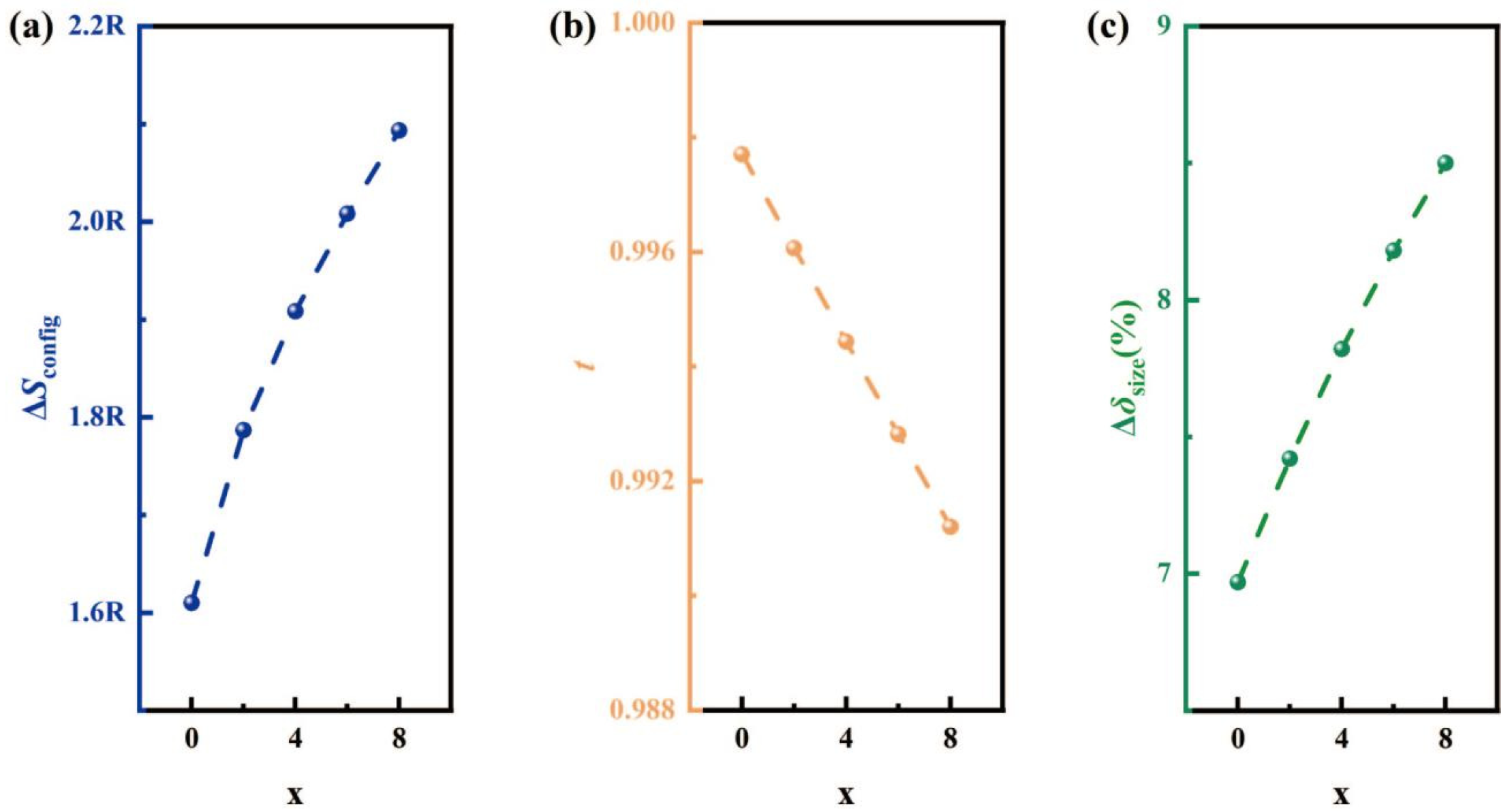- Ning, Y.; Pu, Y.; Zhang, Q.; Zhou, S.; Wu, C.; Zhang, L.; Shi, Y.; Sun, Z. Achieving high energy-storage properties in perovskite oxide via high-entropy design. Ceram. Int. 2023, 49, 12214–12223. [Google Scholar] [CrossRef]