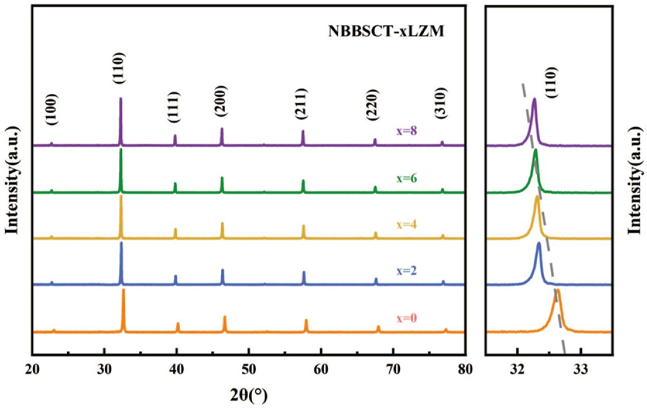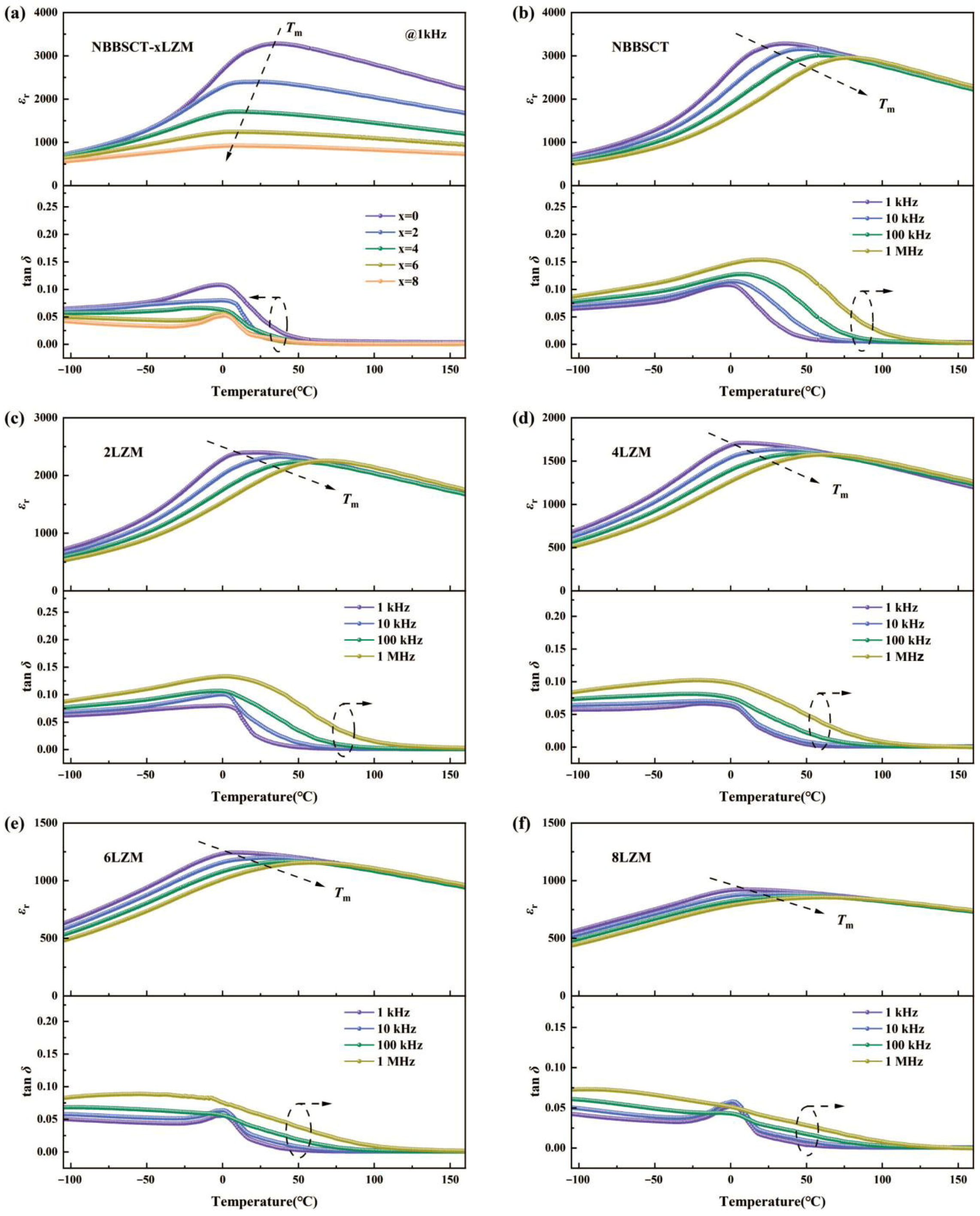 - Ning, Y.; Pu, Y.; Chen, Z.; Zhang, L.; Wu, C.; Zhang, X.; Wang, B.; Zhang, J. Novel high-entropy relaxors with ultrahigh energy-storage efficiency and density. Chem. Eng. J. 2023, 476, 146673. [Google Scholar] [CrossRef]