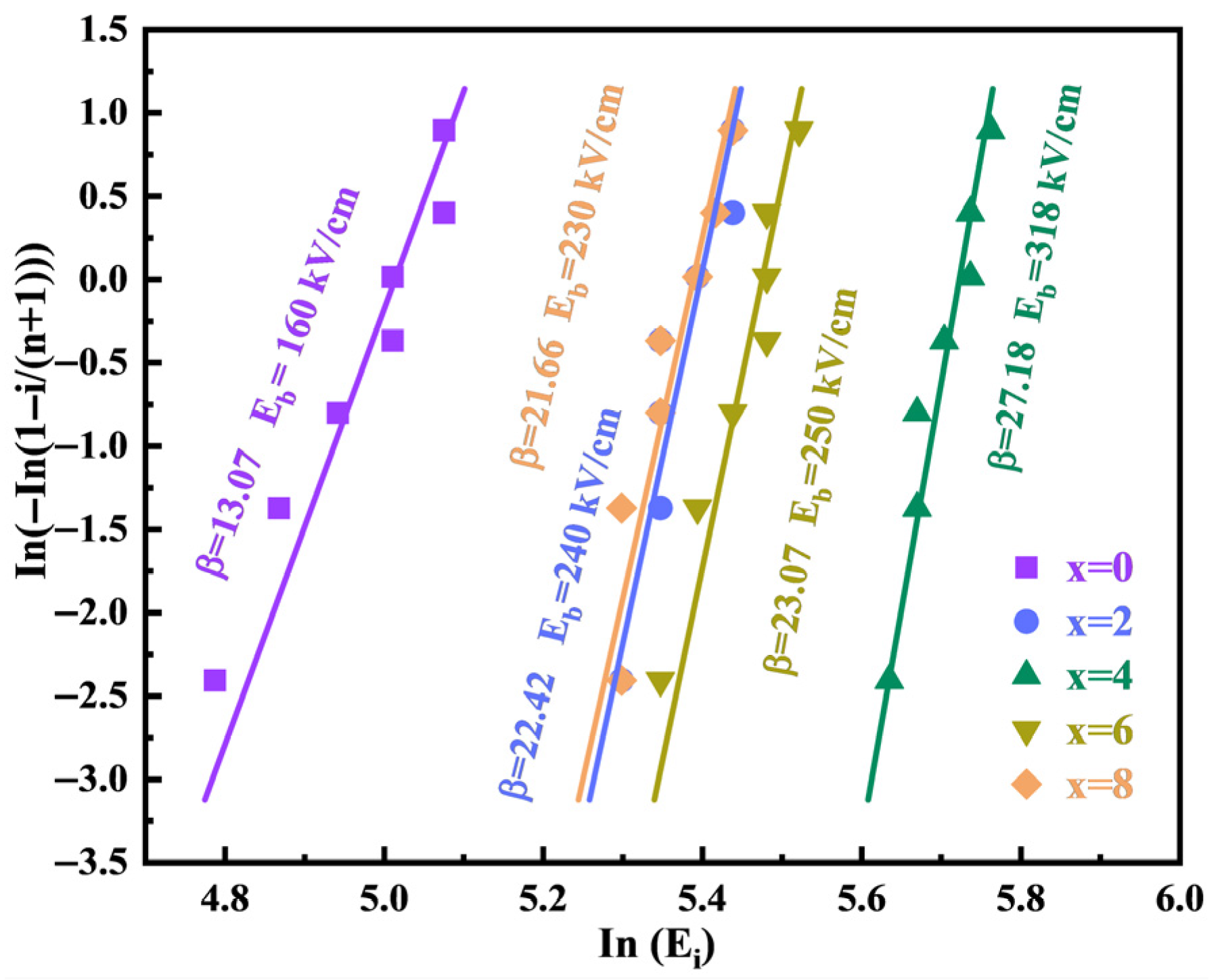 | 2025 | [((Bi0.5Na0.5)0.94Ba0.06)0.75(Ca0.5Sr0.5)0.25]0.955Nd0.03Ti0.9(Zr1/3Hf1/3Sn1/3)0.10O3 | 597 | 6.84 | 82.9 | [36] |