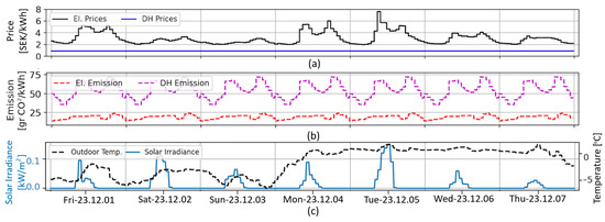 | [13] | Rule-based | White | District heating, heat pump, thermal storage, solar energy | Economic, Environment | More than 27% reduction in CO2 emission of electricity use when using the thermal storage and load shifting, and an extra 3.9–9.7% reduction potential when using solar-assisted heat pumps. |