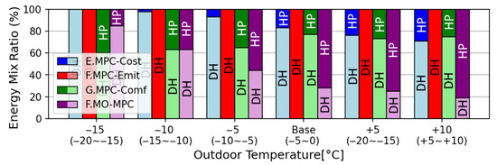 | [9] | MPC, rule-based | White | Low-temperature district heating, heat pump, thermal storage | Economic | 23% cost saving with dynamic electricity prices. As a result of load shifting with the multiple input energies and thermal storage. |
